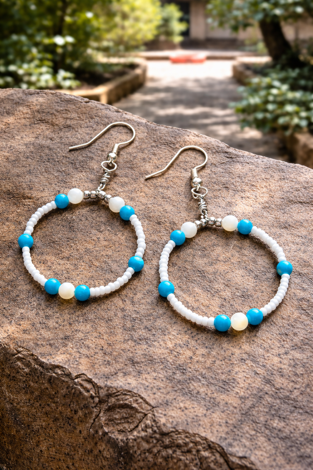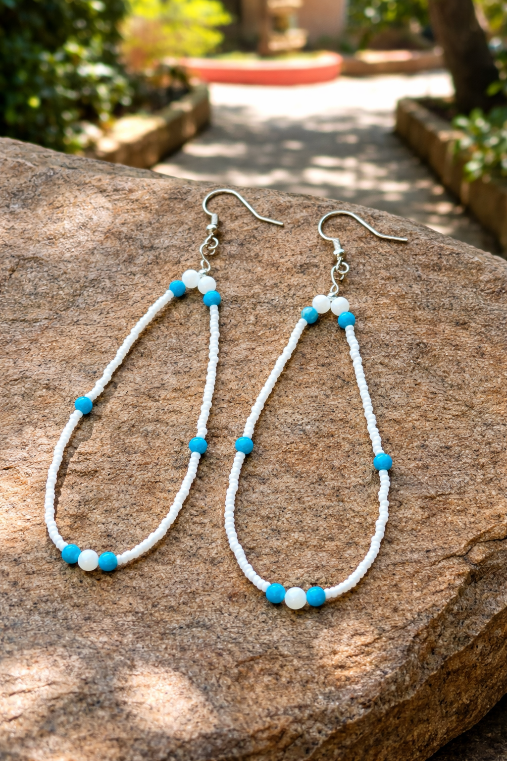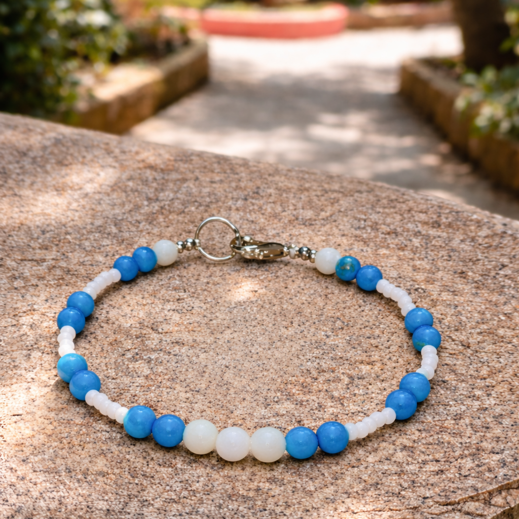 White and turquoise freshwater pearls, accented in glass.